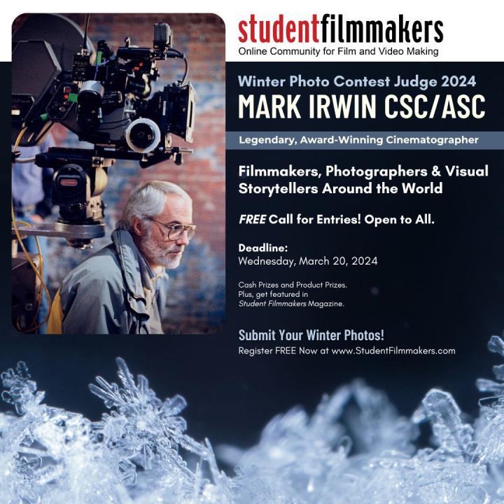 StudentFilmmakers.com is super excited to announce Mark Irwin CSC/ASC as one of the judges for the Winter Photo Contest 2024. Mark, renowned for his outstanding work as a cinematographer in the film industry, will bring his wealth of experience and artistic eye to evaluate the entries of photographers, filmmakers, and visual storytellers from around the world.